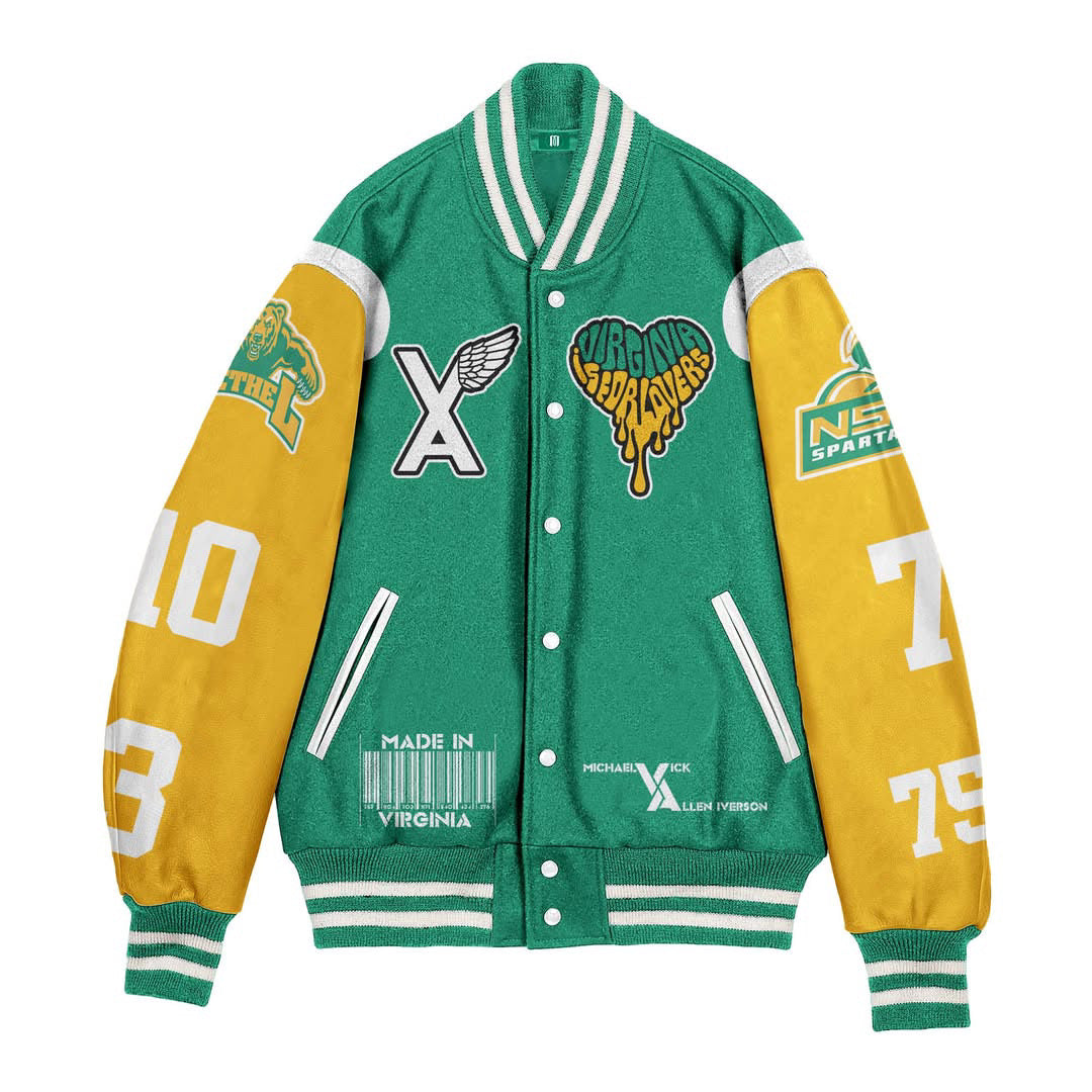 • Iconic Athlete References: Tribute to Virginia’s sports legends with references to icons like Michael Vick and Allen Iverson, embroidered on the jacket to honor their impact on the culture.