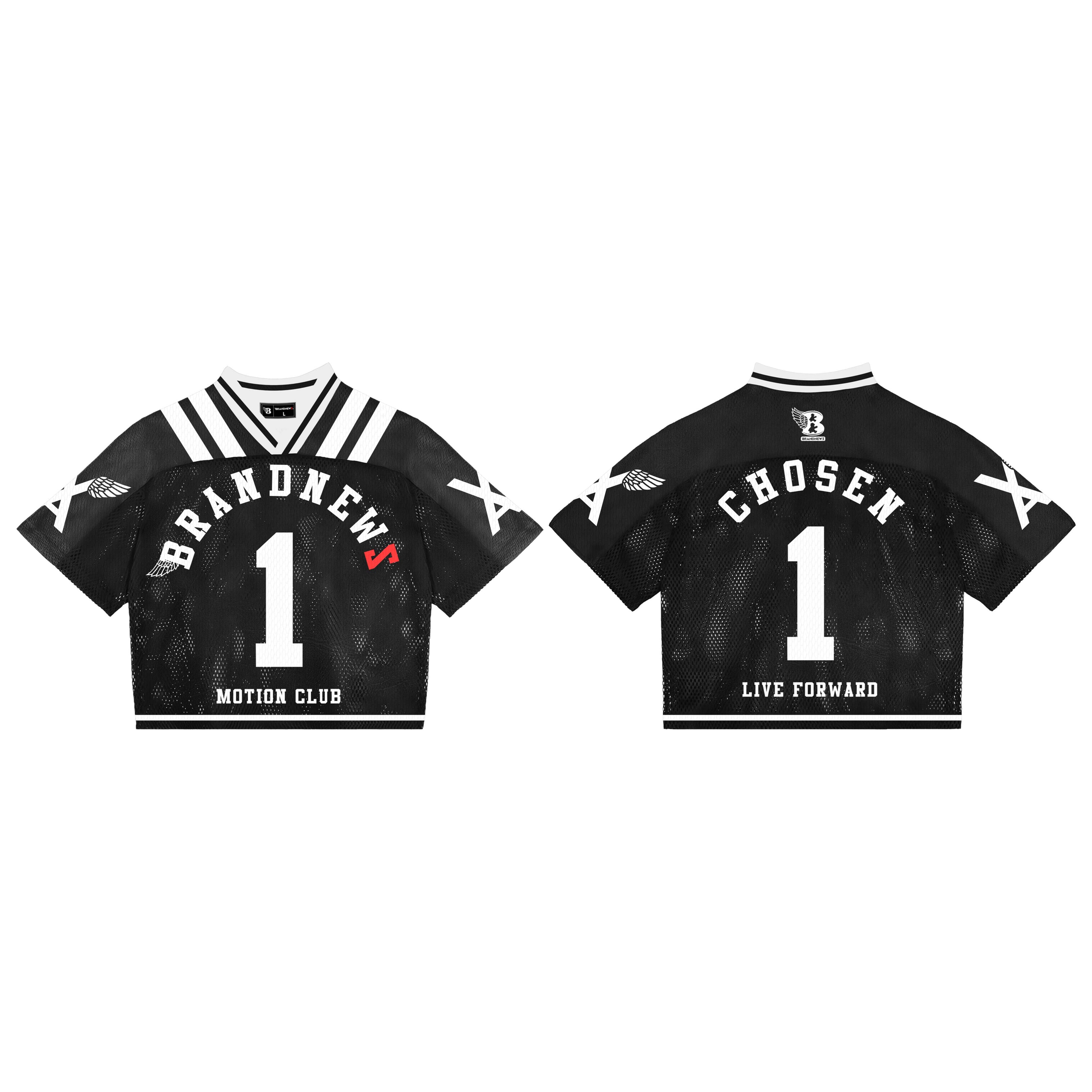 • Bold “BRANDNEWZ” arched across the chest with #1 front and back